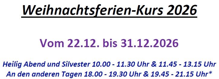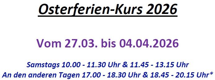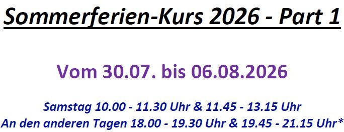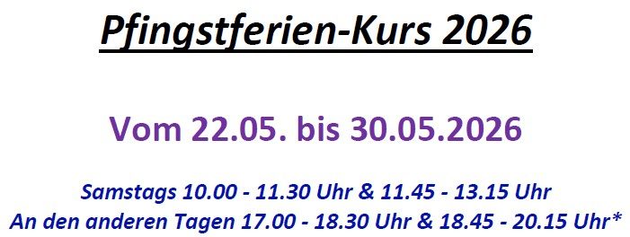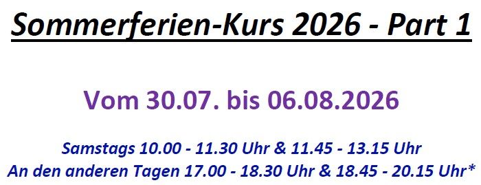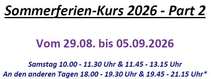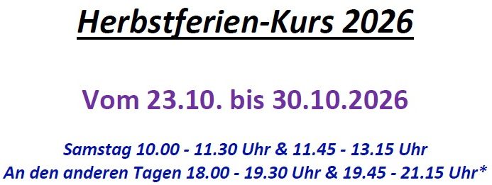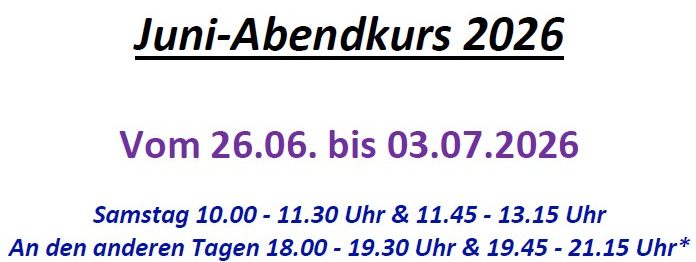 Nachstehend findest du die nächsten Kurse, die ich anbiete. Einfach auf den gewünschten Kurs klicken, dann öffnet sich der Download der PDF-Datei mit dem genauen Ablaufplan...